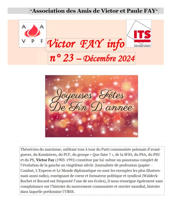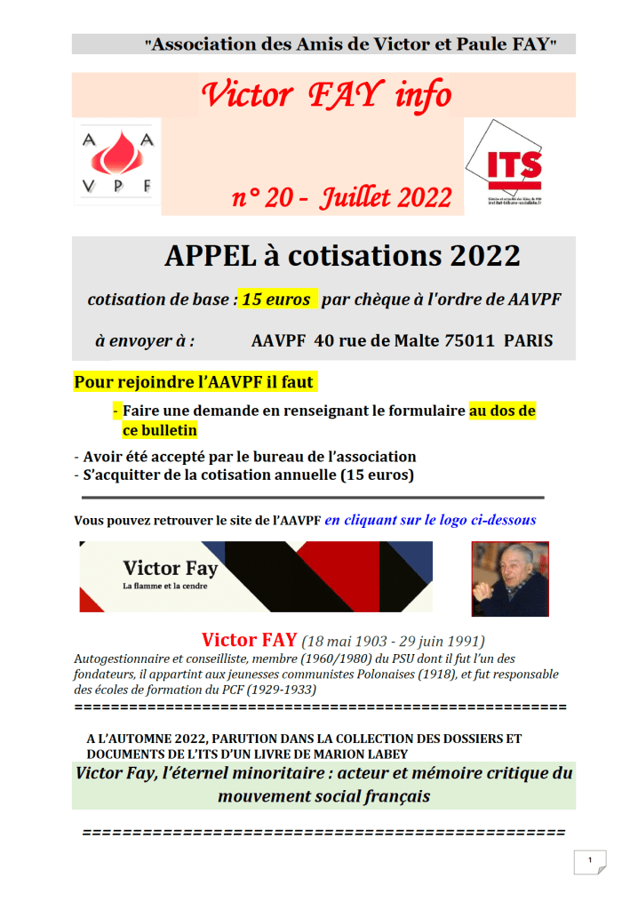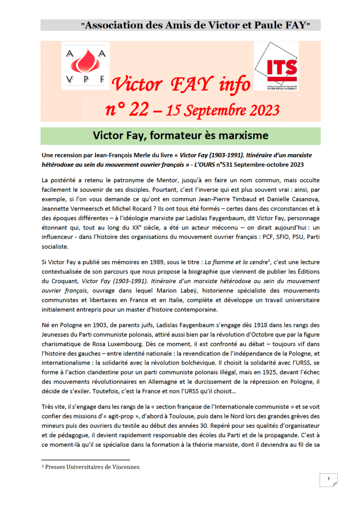 Le livre est paru dans la Collection Dossiers et Documents de l’ITS avec le soutien financier du fonds de dotation Victor, Paule et Simone Fay, aux éditions du Croquant.